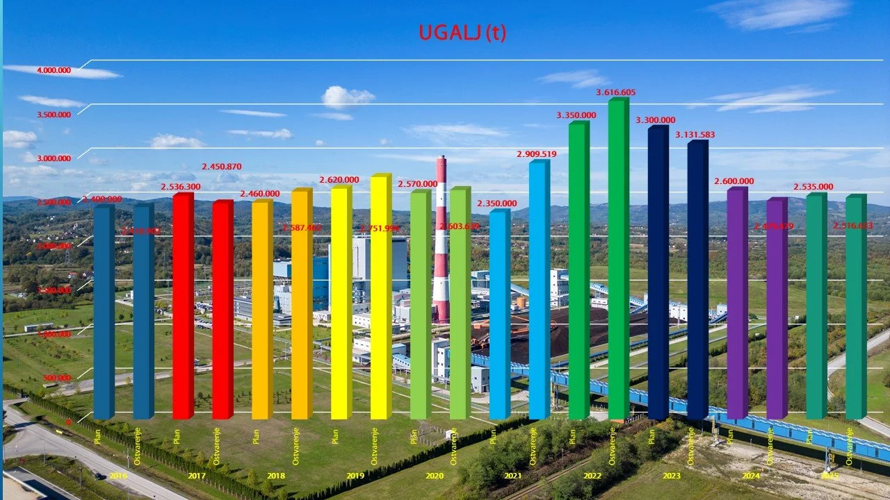 Prerada rovnog uglja se odvija suvim postupkom sa drobljenjem i klasiranjem uglja na četiri osnovne klase: komadni ugalj 120-1200 mm, komadni ugalj nakon drobljenja +60 – 120 mm, kocka +30 – 80 mm i energetski ugalj –40+0mm.